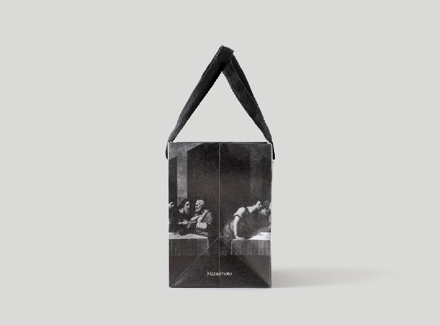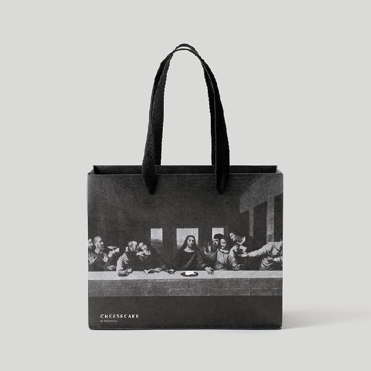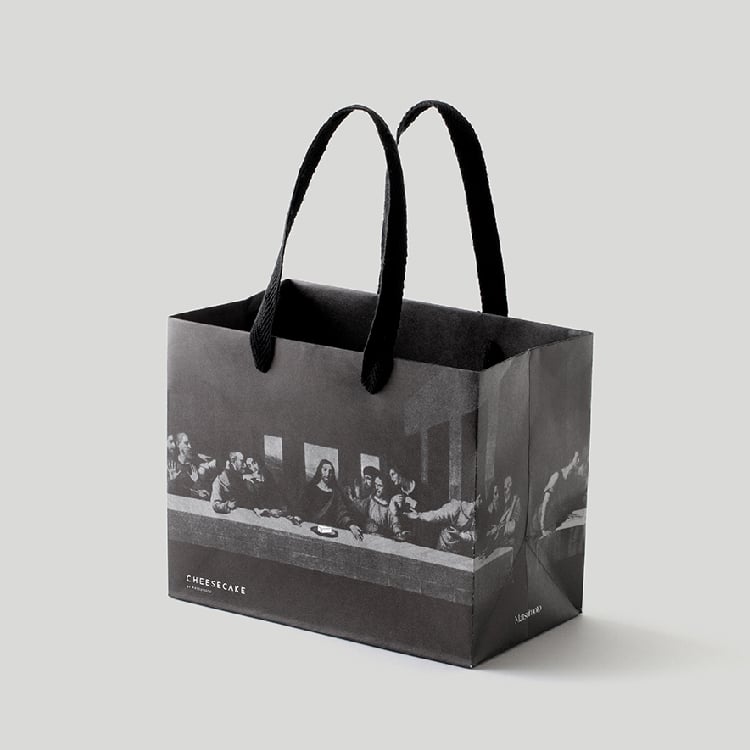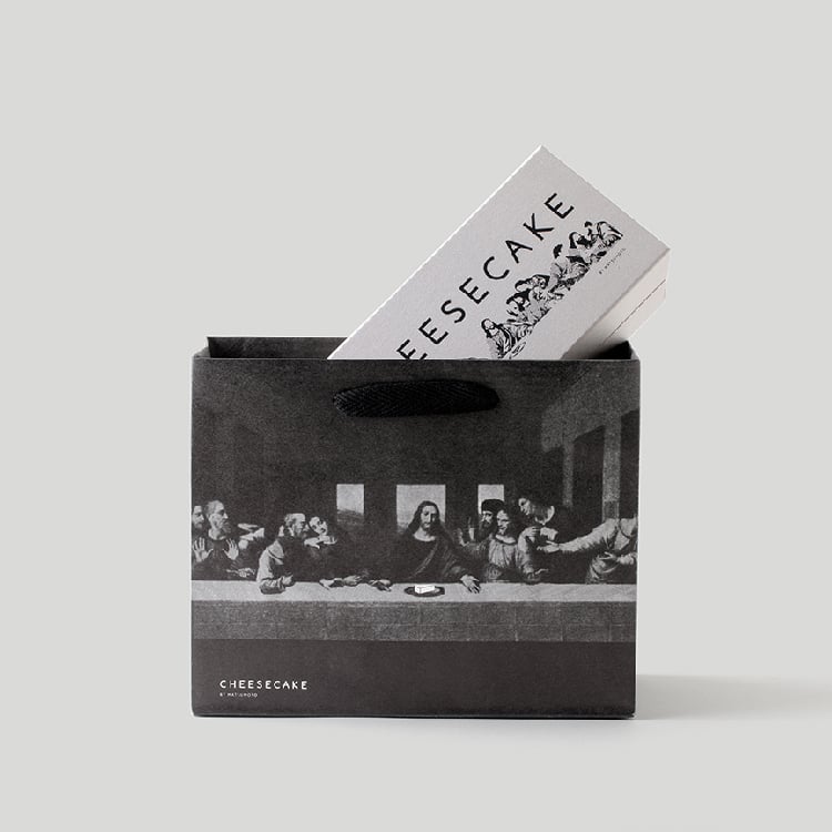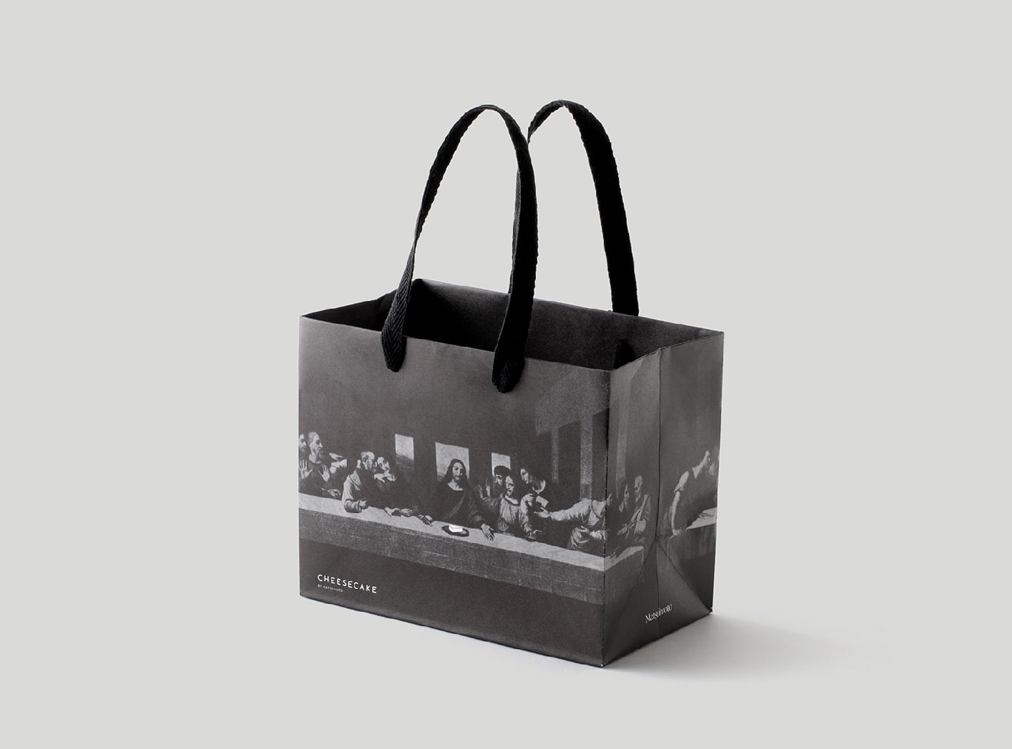 大切な方へ贈りたいときにもご使用いただける、Matsumotoのショッピングバッグです。チーズケーキのパッケージの世界観と統一したデザインになっています。